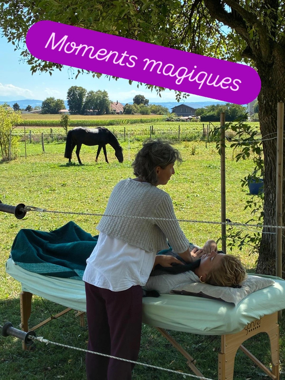 Les bienfaits de ces thérapiesLe shiatsu, le massage du ventre et des organes internes et son du calice de cristal permettent une activation des forces naturelles d’auto-guérison du corps, de la circulation et de l’harmonisation de l’énergie dans tout l’organisme. Ils insufflent également l’éveil, les perceptions corporelles et la conscience de soi. Ils nous aident à retrouver la confiance, la paix intérieure, l’épanouissement et la joie de vivre.